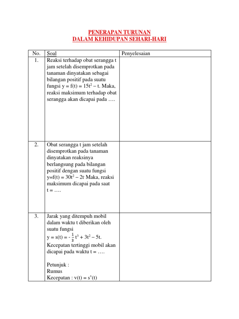 Soal Cerita Aplikasi Turunan - 1 / Check spelling or type a new query.. We did not find results for: Maybe you would like to learn more about one of these? Check spelling or type a new query.
